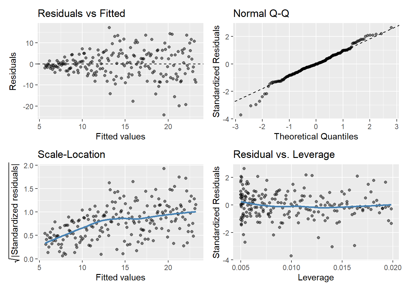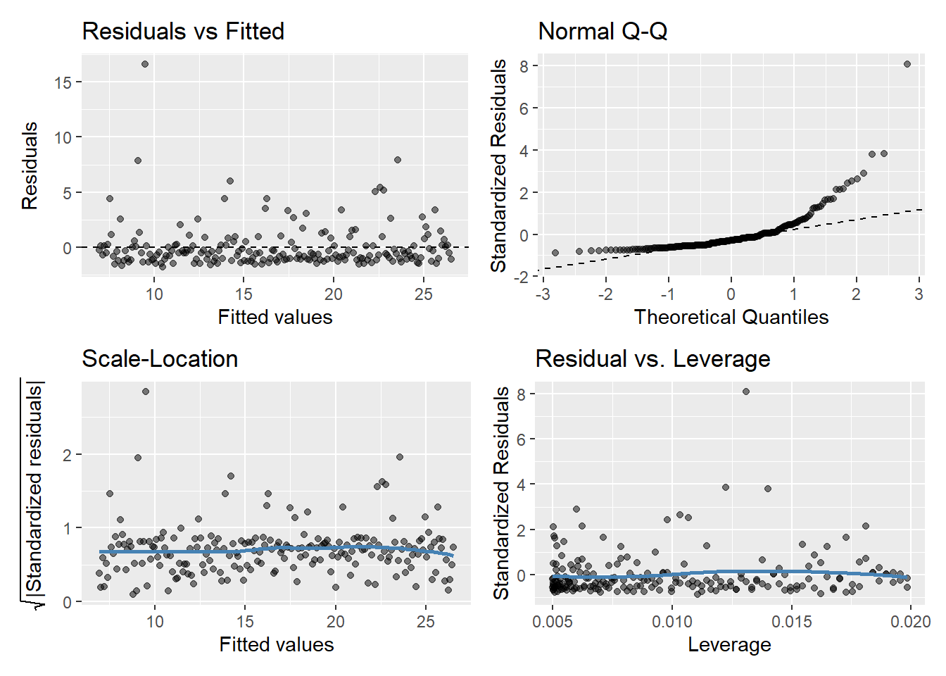 Model: \(\textrm{log GM}[Y_i | X_i] = \beta_0 + \beta_1 \times X_i\)