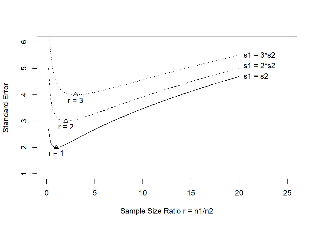 Smallest \(V\) when \(r = \frac{n_1}{n_2} = \frac{\sigma_1}{\sigma_2}\)