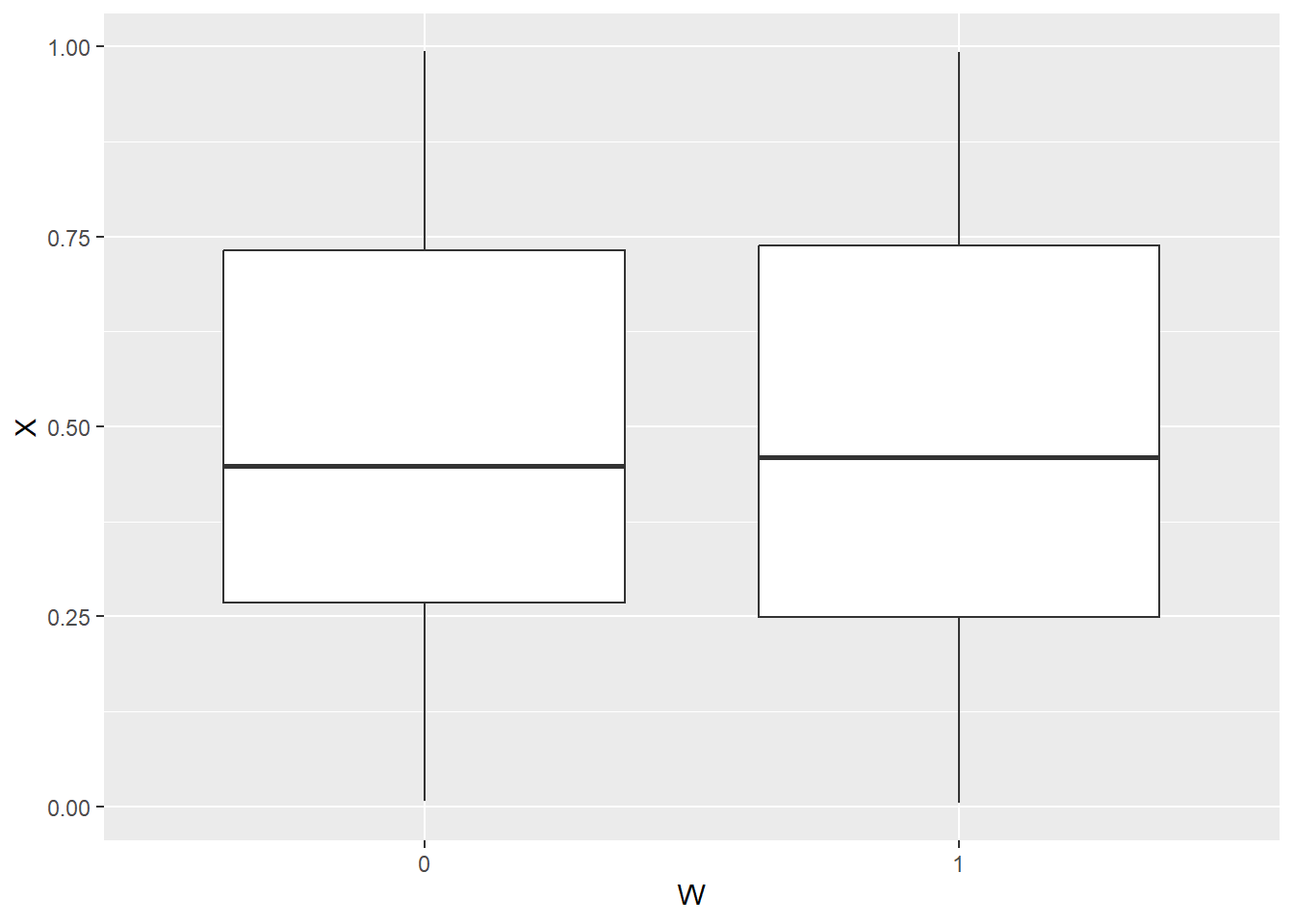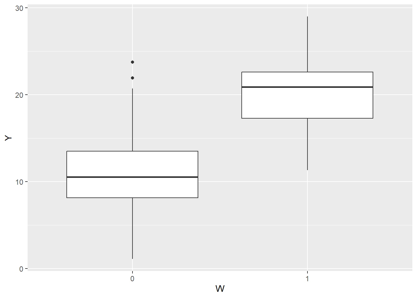 ggplot(precisiondata, aes(x=W,y=Y)) + geom_boxplot()