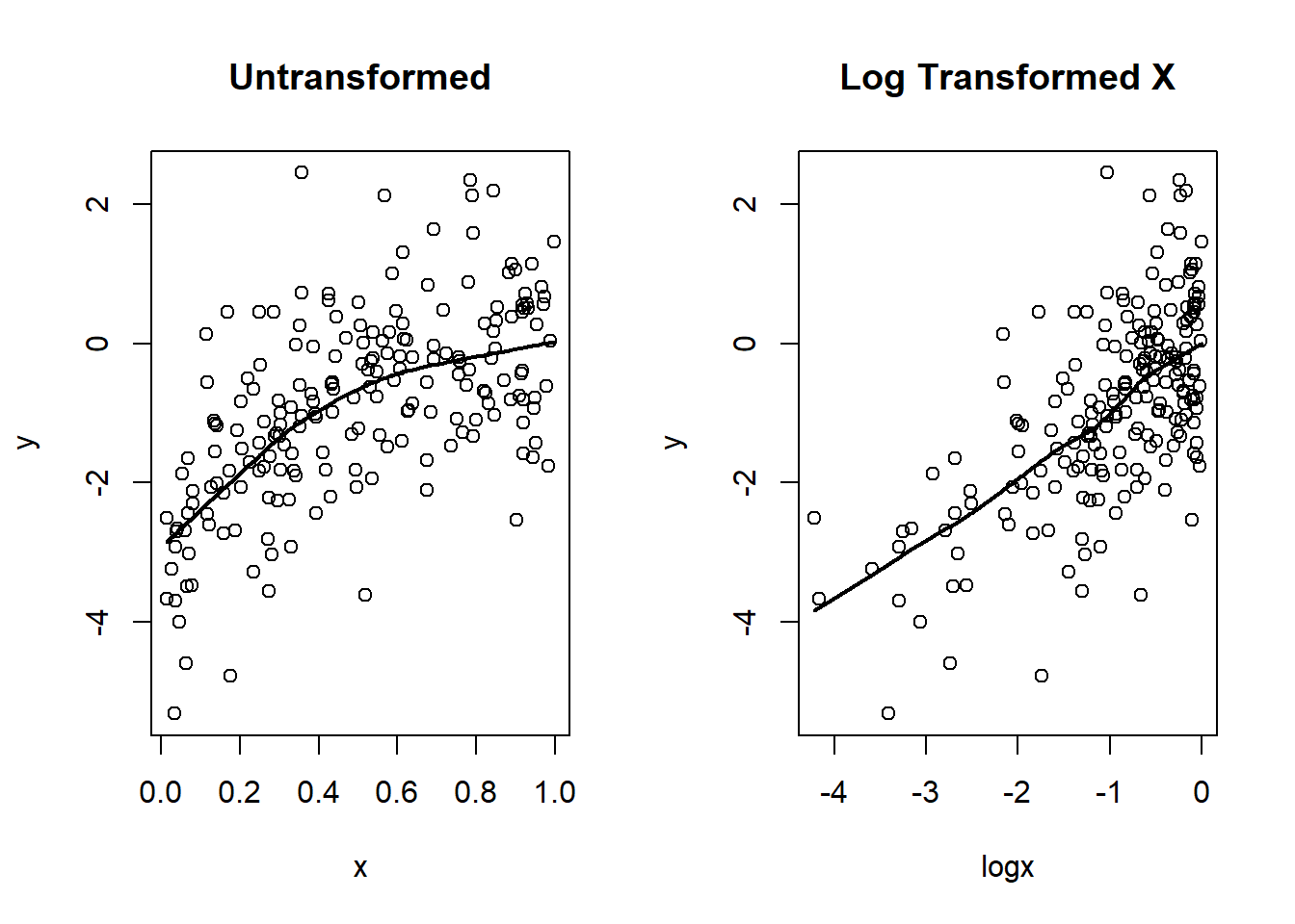 Note that a quadratic term does not include all possibilities for non-linearity. We will cover other (better) approaches later in the notes
