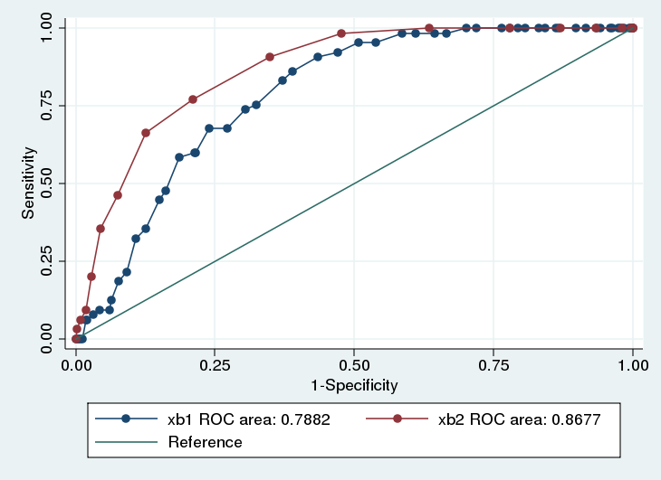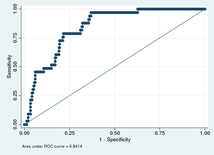 C-index: Area under the ROC curve. Index near 1 indicates higher accuracy.